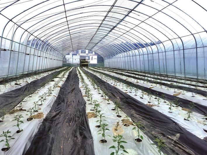 春華鎮(zhèn)陽雀湖九木農(nóng)業(yè)公司目前共有120個大棚,已有超90個種下辣椒,余下大棚正等待種植。每個大棚中都采用地膜覆蓋栽培,可以有效提高土溫、驅(qū)避蟲害、防止雜草生長。公司負責人介紹,基地土地流轉(zhuǎn)面積200余畝,全部種植“2307”辣椒,日常有30到60名工作人員在基地里工作,等到辣椒收獲時,每天能供應上萬斤辣椒。公司已與鎮(zhèn)上達成合作,進行產(chǎn)業(yè)扶貧,幫助53戶家庭實現(xiàn)增收。