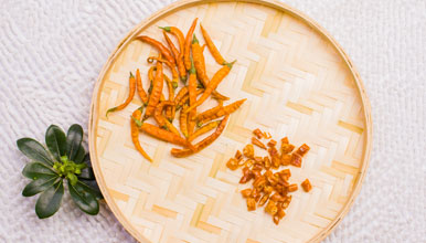 三、匡老五辣業(yè)根據(jù)各品種干辣椒的特性,如南方辣椒旱氣濕高,鮮椒水份大特點,烘烤至九成五干,再配以密封包裝(既保有了鮮亮的色澤,又保存有濃郁的辣椒香辣味,同時氣溫20℃以內(nèi)可以保存兩個月以上),北方基地以自然晾干為主,保留了產(chǎn)品的原汁原味,晾曬至保存條件的干度為宜,用透氣的包裝加以貯存。